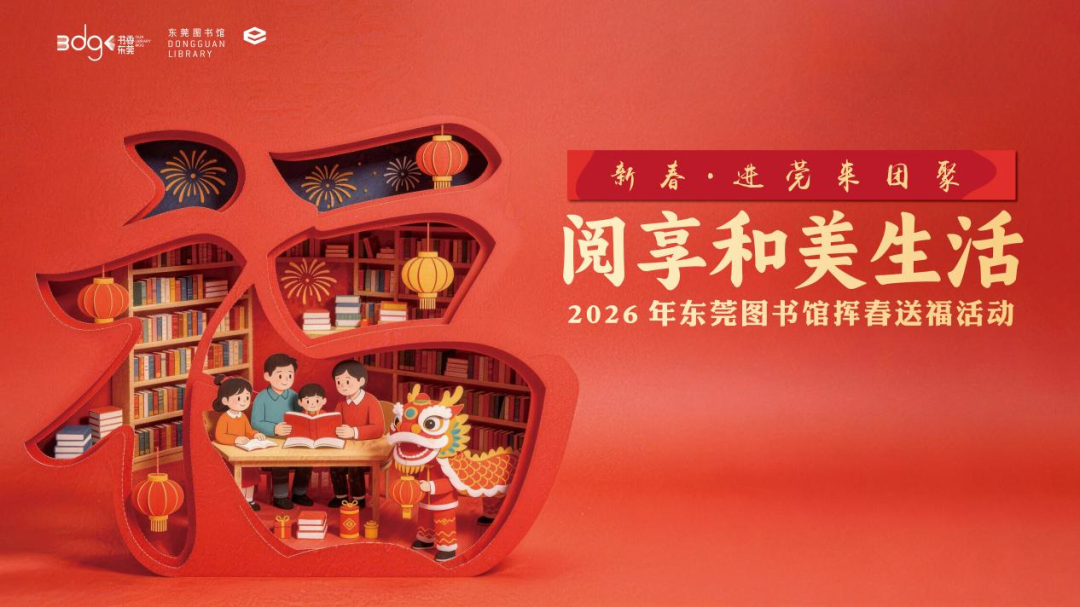 春节将至,东莞图书馆邀您一起“写”福字、“读”东莞、“集”好运,让墨香与书香交织成最温暖的新春序章!